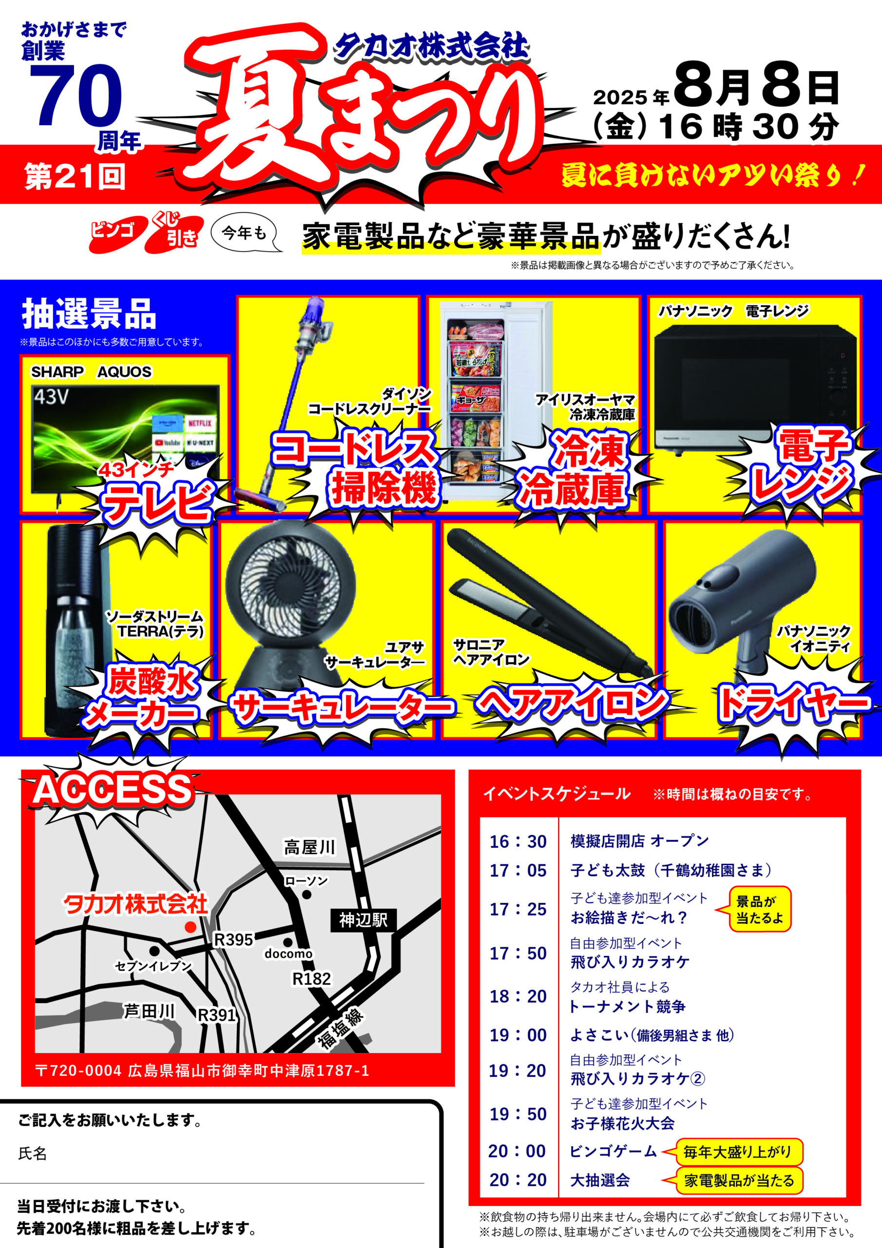 TOP>お知らせ>第21回タカオ株式会社夏祭り開催のお知らせ>2025_夏祭りチラシ【修正版】_アートボード 1